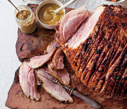 4. Bake on a golden-brown crust. The ham experience can be pretty monotonous without the contrast between caramelized crust and tender pink middle. So once you've brushed your ham with glaze, raise the oven heat so that it turns savory and ever-so-slightly crispy. Then all you need to do is put it on a platter and pass the mustard.